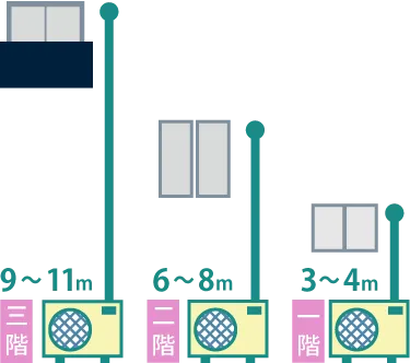 標準工事の配管長は4mまでとなります。超過する場合は、配管延長が必要です。